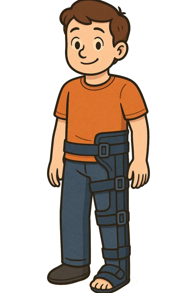 - Use a rigid splint extending from upper thigh to ankle